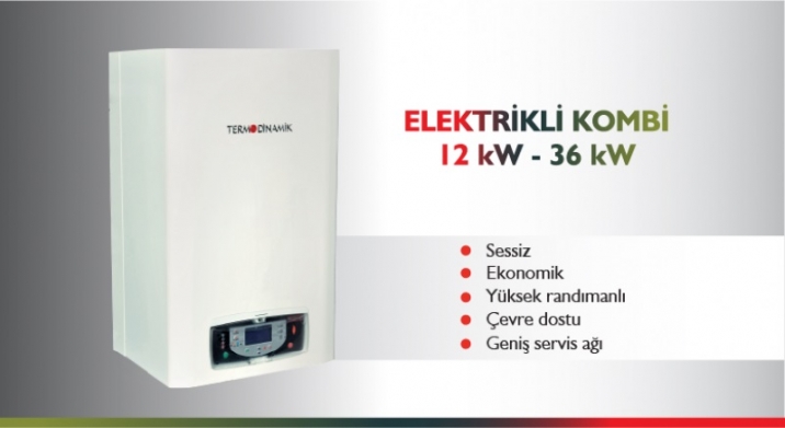 Termodinamik Elektrikli Kombi; 5 ayrı kapasitede, trifaze elektirik enerjisinin bulunduğu yerlerde ısınma ve sıcak su ihtiyacını karşılamaktadır. Yapısındaki ısıtıcıların kademeli olarak devreye girdiği tam elektronik modülasyonlu çalışma sistemi sayesinde, ayarlanan sıcaklık değeri için gerekli en düşük elektrik sarfiyatı ile çalışır.
